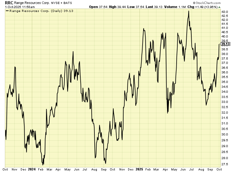 The market thinks so. As you can see from the chart below, natural gas blue chip Range Resources is in a long-term (albeit volatile) uptrend… and is knocking on the door of a new 52-week high. Fellow leaders EQT and Expand look much the same. We bet this theme achieves the aforementioned new high.