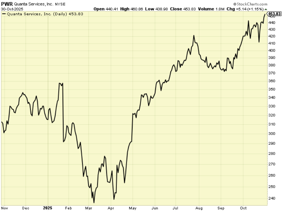 But don’t take our word for it. Take the market’s word. This week, EPC giant Quanta Services (PWR) set a new all-time high.