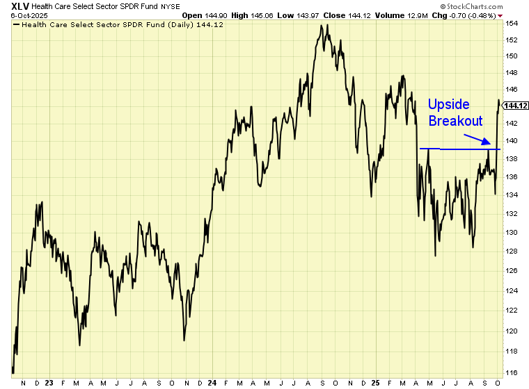 As you can see in the chart below, the market is starting to warm up to the Baby Boomer health care theme. The health care fund we follow (XLV) recently broke out of a sideways consolidation to reach a new 6-month high. When you pair this new price strength with the uptrend in biotech we’ve covered many times, you have me thinking it’s time to be long the Boomer health care theme.